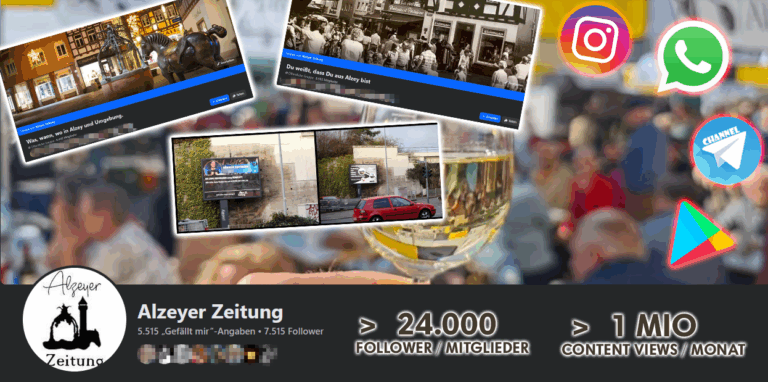 Die Alzeyer Zeitung setzt nicht nur auf Text. Ihre Reichweite erstreckt sich über:
