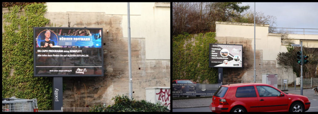 - LED-Leinwand in der Stadt – sichtbar im Zentrum, direkt vor der Bahnbrücke Richtung Kreiskrankenhaus AM DAMM