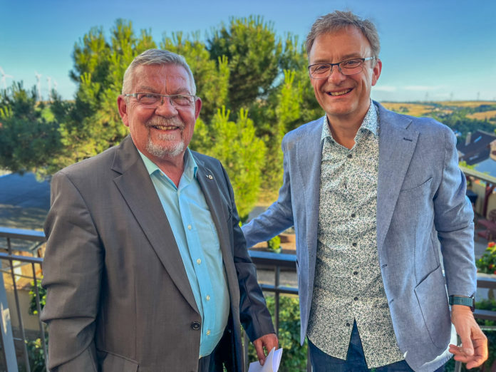 Feierliche Übergabe in Zell: Am 28. Juni 2025 fand beim Lions Club Alzey der offizielle Präsidentenwechsel statt. Markus Eiden übergab das Amt an Dr. Heinzbert Hurtmanns. Rund 40 Mitglieder nahmen an der Veranstaltung im Gasthaus Kollektur in Zell teil. Bei strahlendem Wetter bot sich ein weiter Blick ins Zellertal und auf den Donnersberg – ein passender Rahmen für die feierliche Zeremonie.