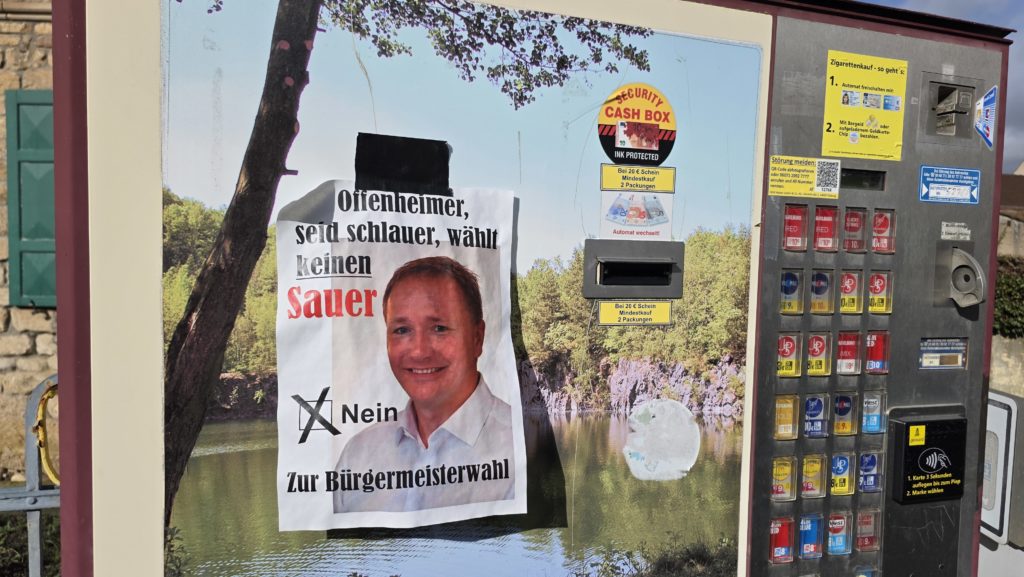 „Offenheimer seid schlauer, wählt keinen Sauer – NEIN zur Bürgermeisterwahl“.