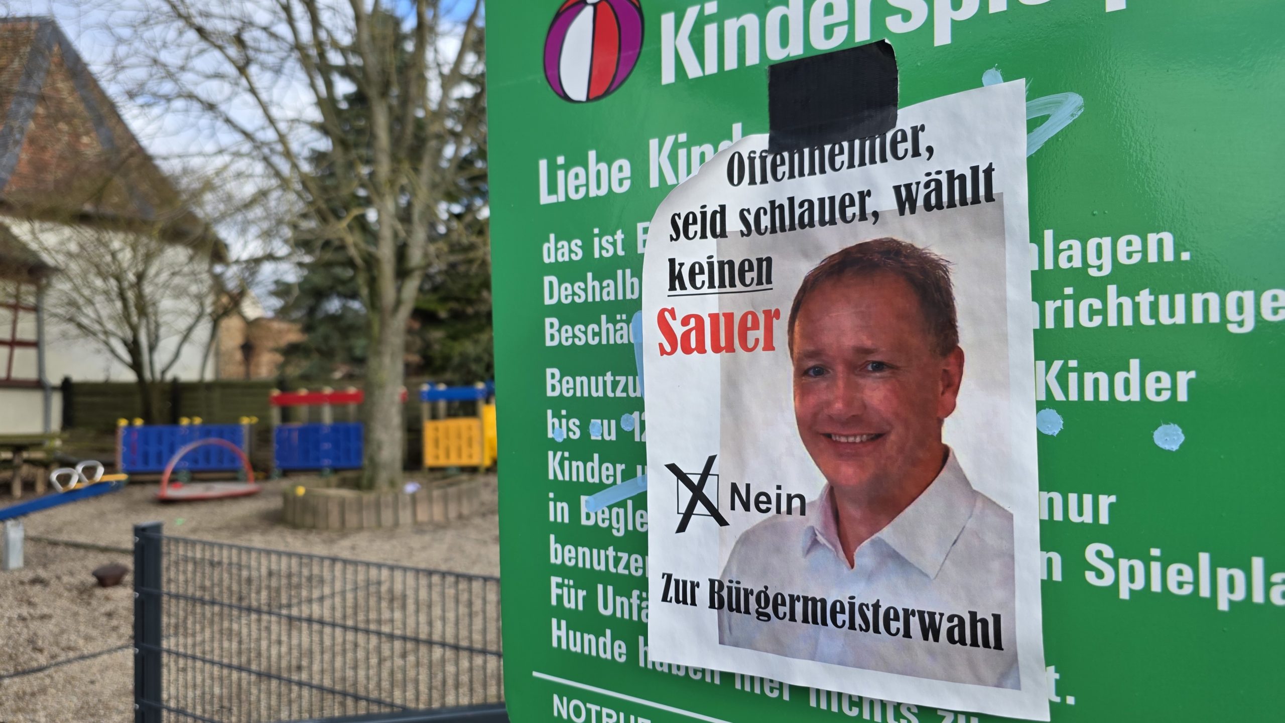 Doch kaum war seine Kandidatur öffentlich, tauchten im Ort großflächig Plakate mit der Aufschrift auf: