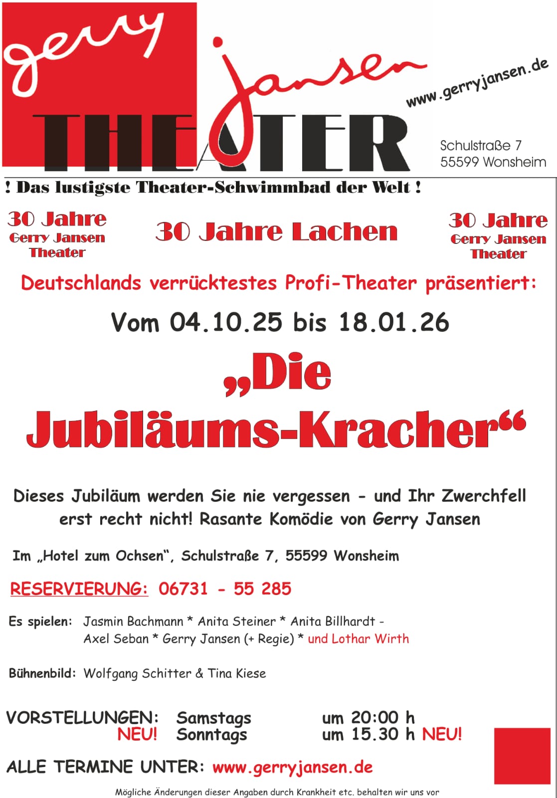 30 Jahre Gerry Jansen Theater feiert mit dem neuen Stück: "Die Jubiläums-Kracher"