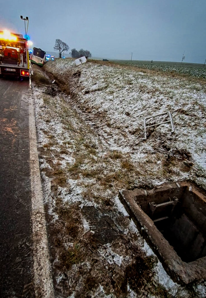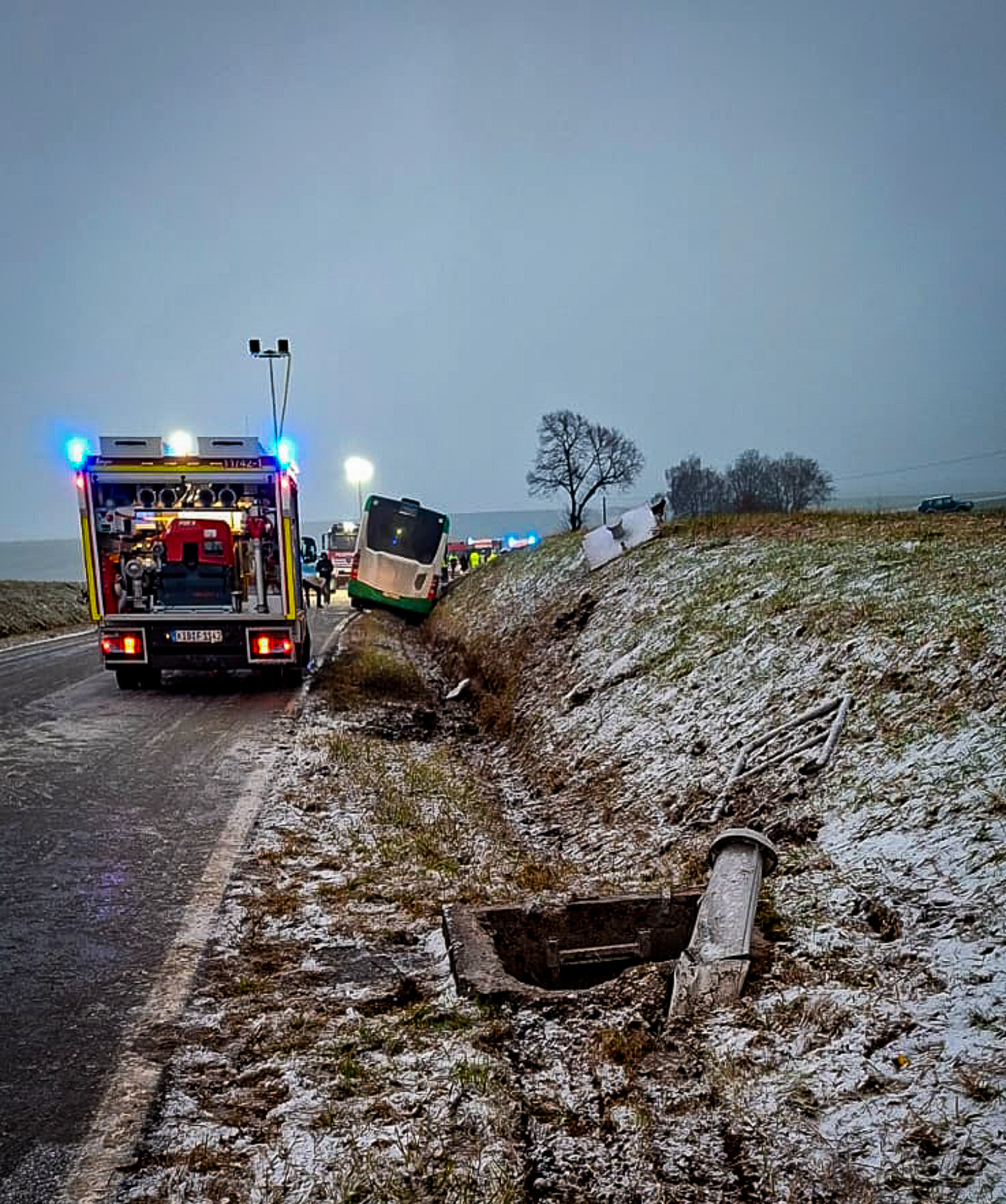 Der Linienbus war bei winterlichen Straßenverhältnissen von der Fahrbahn abgekommen, kollidierte dabei gegen einen Schachtdeckel und landete letztlich in einem Graben, bei dem er seitlich liegend zum stehen kam. Mehrere Schulkinder befanden sich an Bord, einige wurden leicht verletzt. Nach Rücksprache mit der Polizei wurde der Notruf aus dem verunfallten Bus heraus tatsächlich von einer 16-jährigen Schülerin abgesetzt, nicht vom Busfahrer. Die Polizei Kirchheimbolanden war vor Ort und setzt ihre Ermittlungen fort.