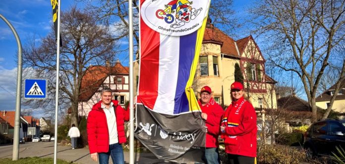 ALZEY (k)- Wer in diesen Tagen durch Alzey fährt oder spaziert, dem dürfte eine neue Beflaggung ins Auge fallen: Auf Kreiseln mit Fahnenmast sowie an Gebäuden wie der Stadthalle weht seit Kurzem eine neue Flagge. Sie macht unmissverständlich deutlich, dass die Fastnacht in Alzey kurz vor ihrem Höhepunkt steht. In den kommenden Wochen bestimmt die fünfte Jahreszeit erneut das Stadtgeschehen.