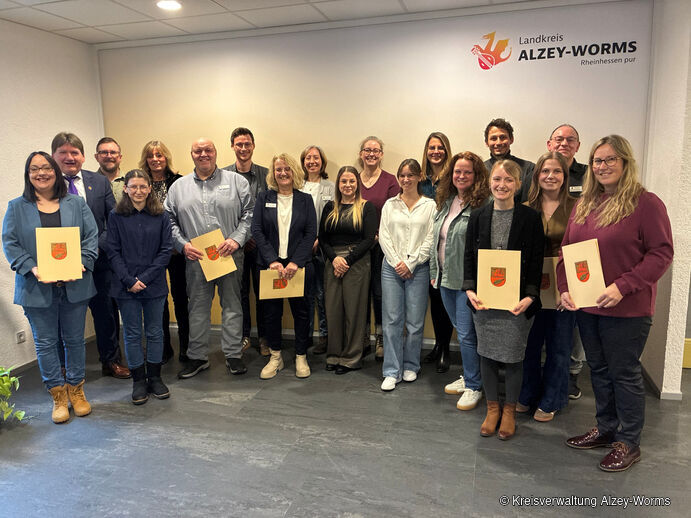 ALZEY (k)- Im Rahmen einer Feierstunde hat Landrat Heiko Sippel langjährige Mitarbeitende der Kreisverwaltung geehrt und ihnen für ihr Engagement im öffentlichen Dienst gedankt.