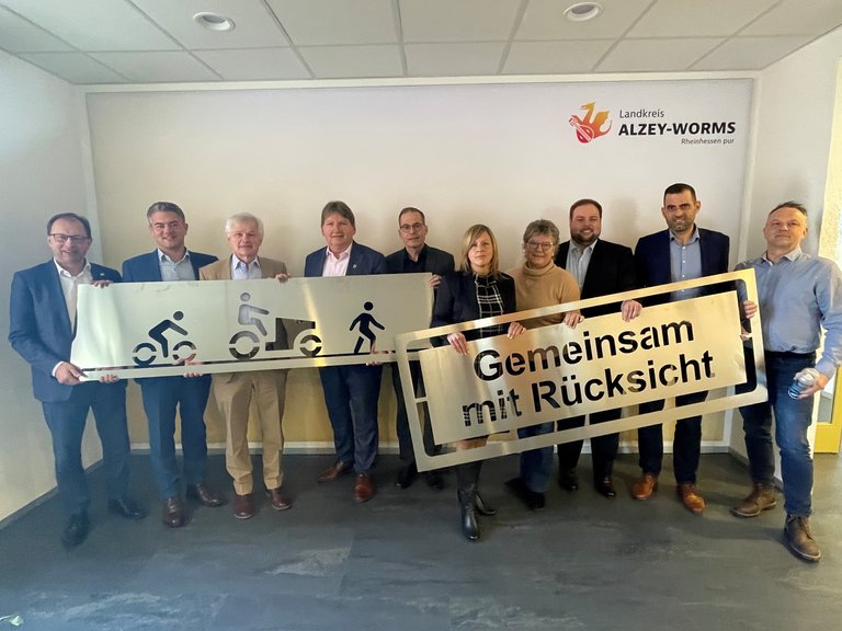 ALZEY-WORMS (k)- Mit der offiziellen Übergabe von Schablonen mit dem Kampagnen-Piktogramm an die Bürgermeister der Verbandsgemeinden sowie an die Stadt Alzey ist die Initiative „Gemeinsam mit Rücksicht“ im Landkreis Alzey-Worms sichtbar angelaufen. Das Projekt tritt damit aus der Planungsphase in die konkrete Umsetzung vor Ort ein.