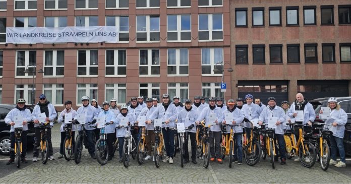 Mit einer ungewöhnlichen Aktion haben die Landrätinnen und Landräte in Rheinland-Pfalz auf ihre angespannte Lage aufmerksam gemacht. Unter dem Motto „Wir Landkreise strampeln uns ab“ fuhren alle 24 Kreischefs gemeinsam mit dem Fahrrad durch Mainz. Ziel war es, ein deutliches Signal an die Landespolitik zu senden.