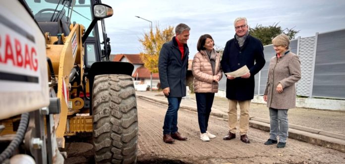ALZEY (jk)– Wirtschafts- und Verkehrsministerin Daniela Schmitt hat gemeinsam mit Alzeys Bürgermeister Steffen Jung die Baustelle der laufenden Sanierung der Ortsdurchfahrt Alzey-Dautenheim (Landesstraße 409, Brunnenstraße) besucht. Auf einer Strecke von rund 700 Metern wird derzeit die Fahrbahn grundlegend erneuert. Das Land Rheinland-Pfalz investiert in die Maßnahme 315.000 Euro.