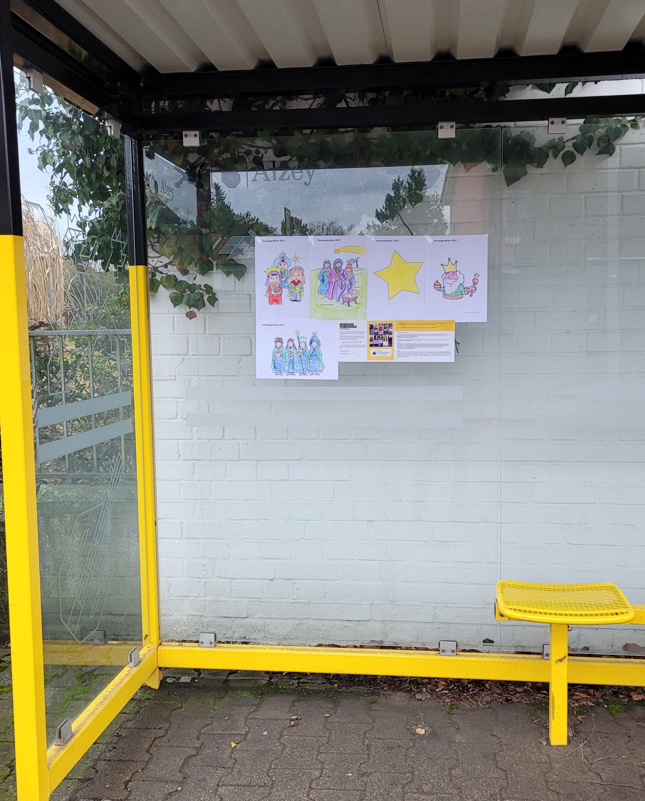 Von der Feuerwehr über die Bushaltestellen bis hin zu den Gemeindehäusern finden sich die Gemälde der Sternsinger wieder, um auf diesem Weg ihr Anliegen, Kindern in Not zu helfen, sichtbar zu machen und um Spenden zu bitten.
