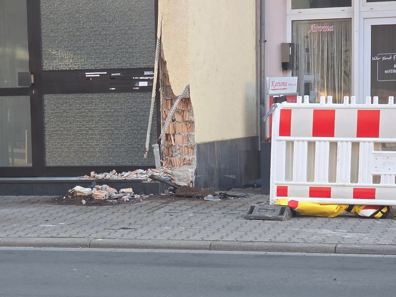 Das Fahrzeug prallte anschließend gegen eine Hauswand und erlitt dabei so starke Schäden, dass ein Totalschaden entstand. Auch die Hauswand erlitt größere Schäden.